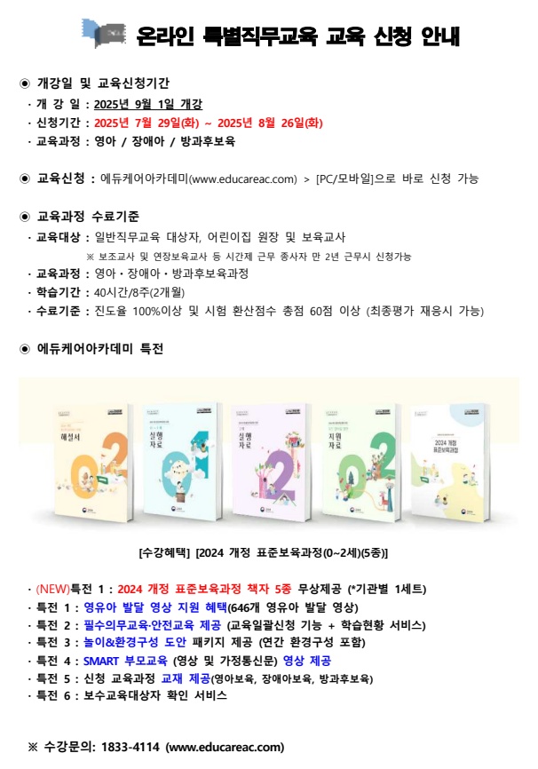 [¿¡µàÄÉ¾î¾ÆÄ«µ¥¹Ì] º¸À°±³Á÷¿ø ¿Â¶óÀΠƯº°Á÷¹«±³À° 2025³â 9¿ù °³° ±³À°½Åû ¾È³»