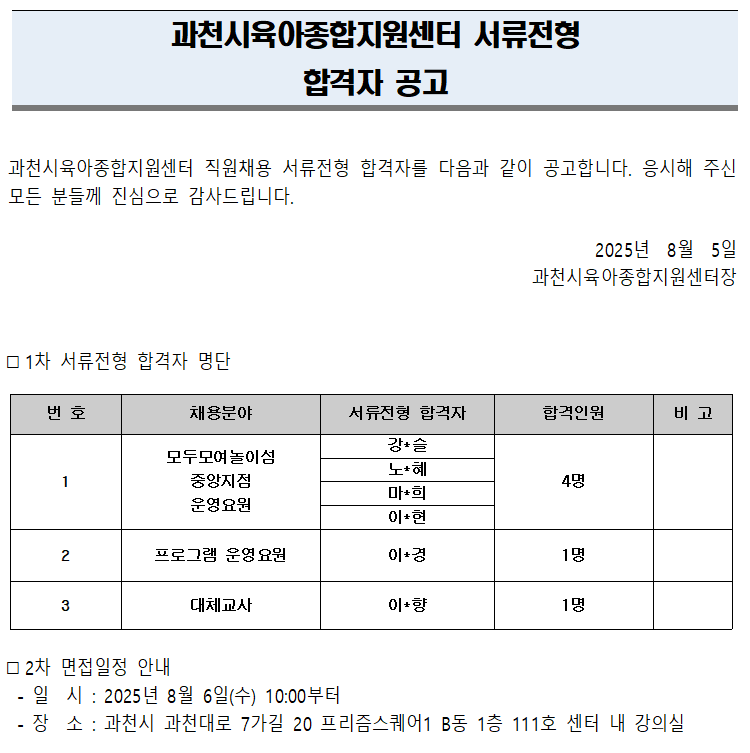 [°úõ½ÃÀ°¾ÆÁ¾ÇÕÁö¿ø¼¾ÅÍ] Á÷¿øÃ¤¿ë 1Â÷ ¼·ùÀüÇü ÇÕ°ÝÀÚ °ø°í
