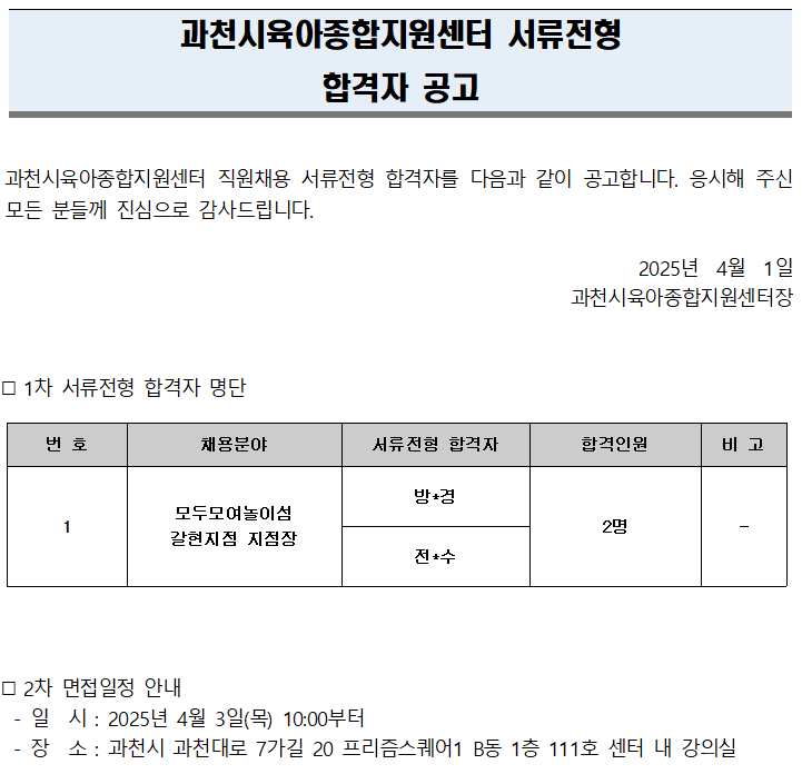[°úõ½ÃÀ°¾ÆÁ¾ÇÕÁö¿ø¼¾ÅÍ] Á÷¿øÃ¤¿ë 1Â÷ ¼·ùÀüÇü ÇÕ°ÝÀÚ °ø°í