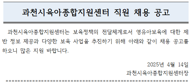 [°úõ½ÃÀ°¾ÆÁ¾ÇÕÁö¿ø¼¾ÅÍ] Á÷¿ø ä¿ë(¿µÀ¯¾ÆÁ¤¼½É¸®¹ß´ÞÁö¿ø»ç¾÷ º¸Á¶ÀηÂ, ´ëü±³»ç) °ø°í