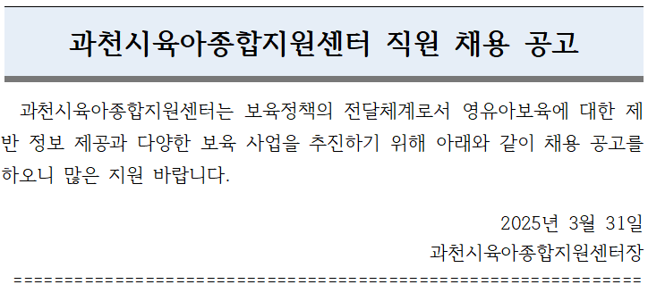 [°úõ½ÃÀ°¾ÆÁ¾ÇÕÁö¿ø¼¾ÅÍ] Á÷¿ø ä¿ë(´ëü±³»ç)¿¬Àå °ø°í