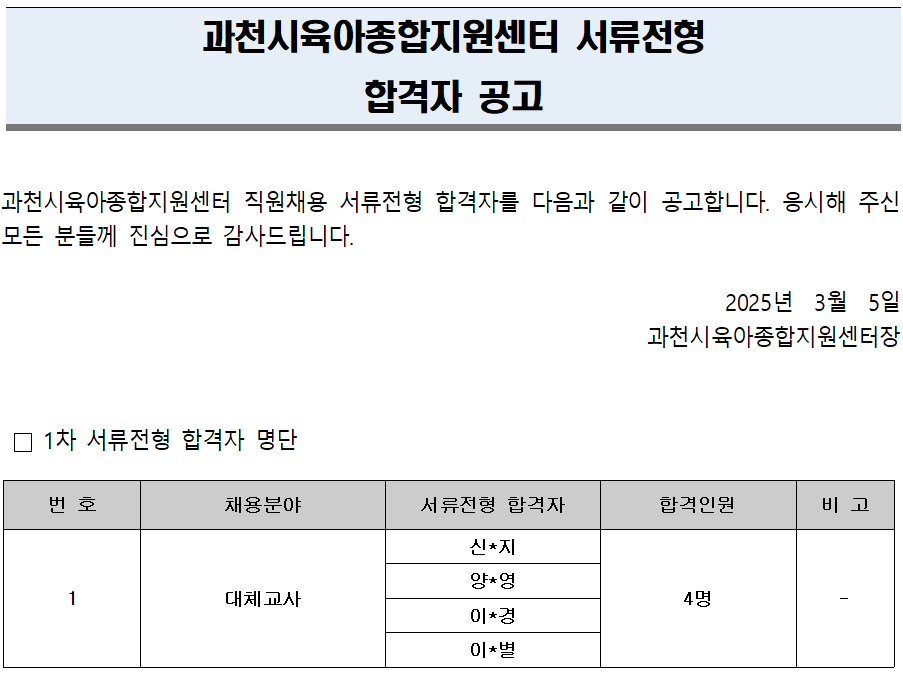 [°úõ½ÃÀ°¾ÆÁ¾ÇÕÁö¿ø¼¾ÅÍ] Á÷¿øÃ¤¿ë 1Â÷ ¼·ùÀüÇü ÇÕ°ÝÀÚ °ø°í