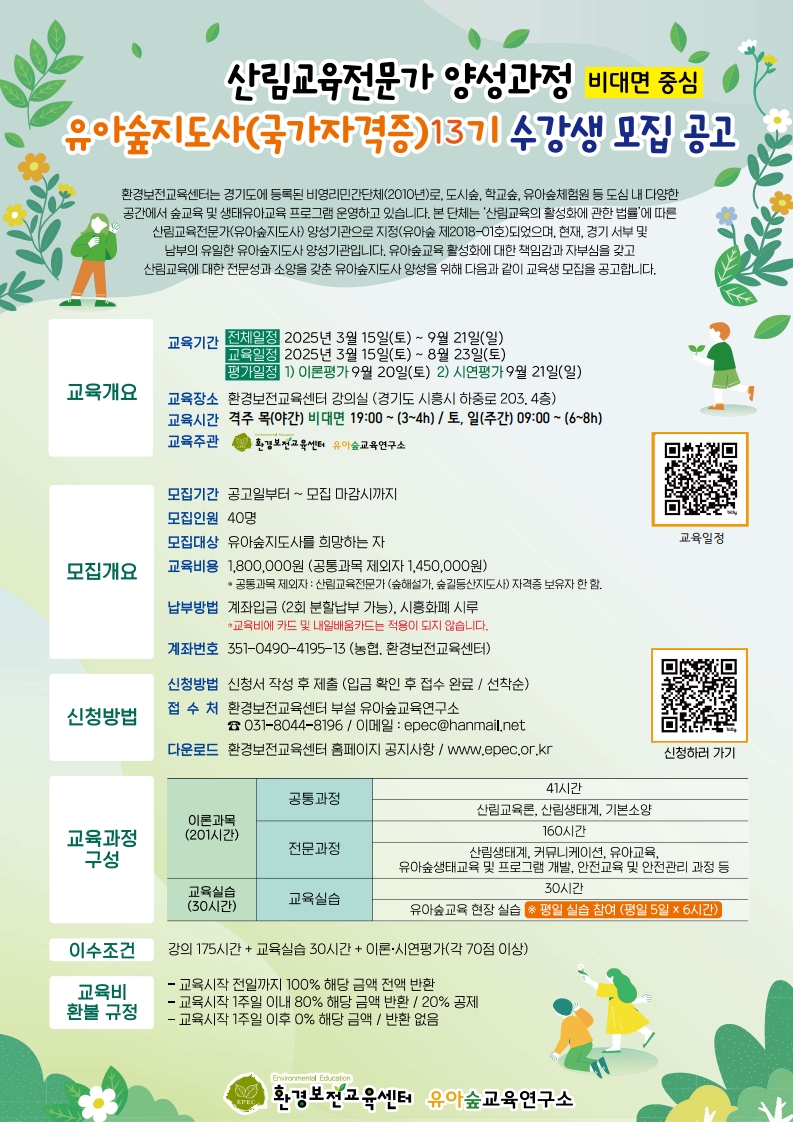 [ȯ°æº¸Àü±³À°¼¾ÅÍ] (±¹°¡Àü¹®ÀÚ°Ý) À¯¾Æ½£Áöµµ»ç 13±â ¾ç¼º°úÁ¤ È«º¸¾È³»