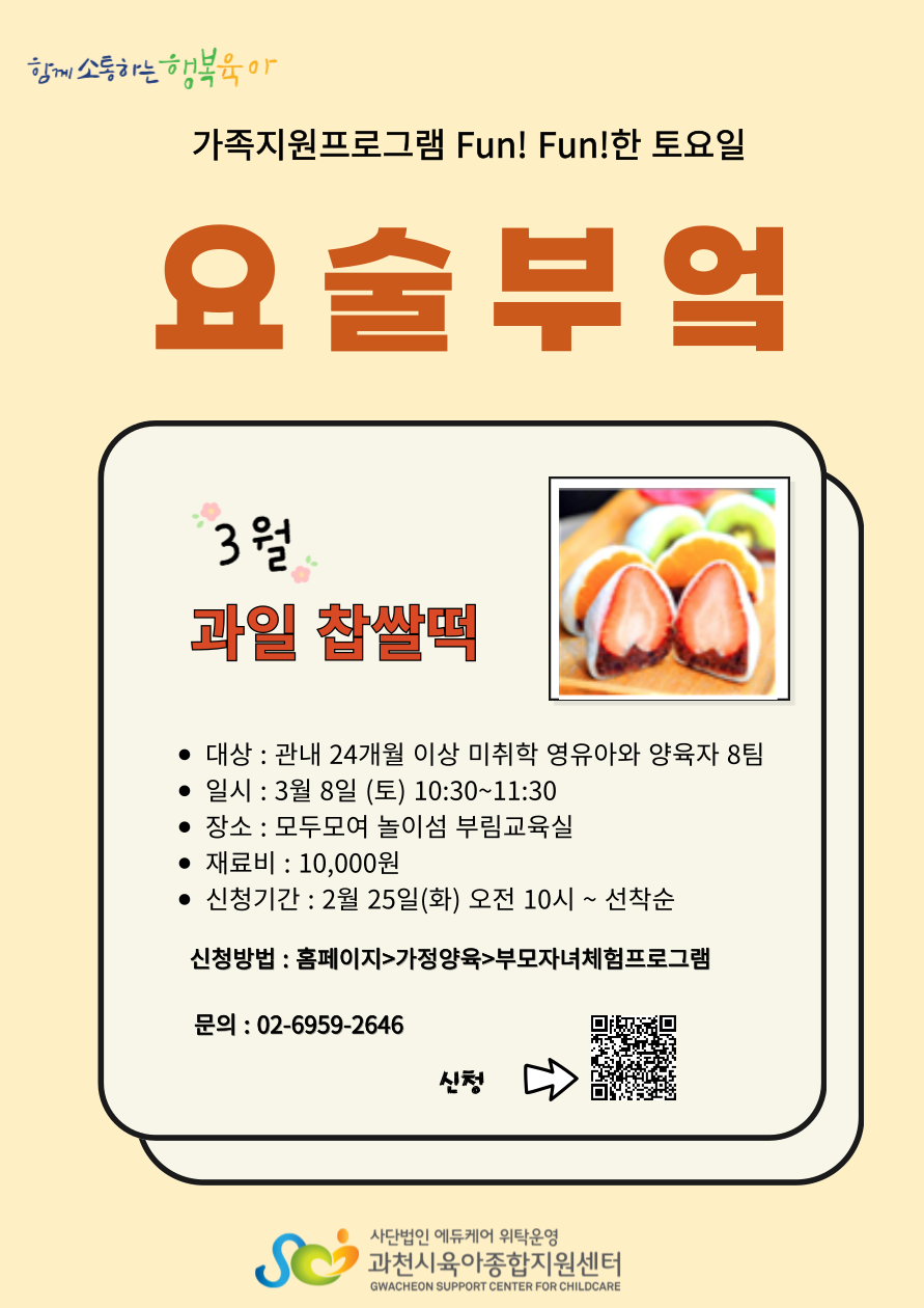 ¸Å¿ù ù°, µÑ°, ¼Â° ÁÖ¿¡ ¸ðµÎ¸ð¿© ³îÀ̼¶ ºÎ¸²ÁöÁ¡¿¡¼ ¸¸³ª´Â Fun! Fun!ÇÑ Åä¿äÀÏ ¼ö¾÷À¸·Î ¿ä¸®, Ŭ·¹ÀÌ, ¸ñ°ø ¼ö¾÷ÀÔ´Ï´Ù.