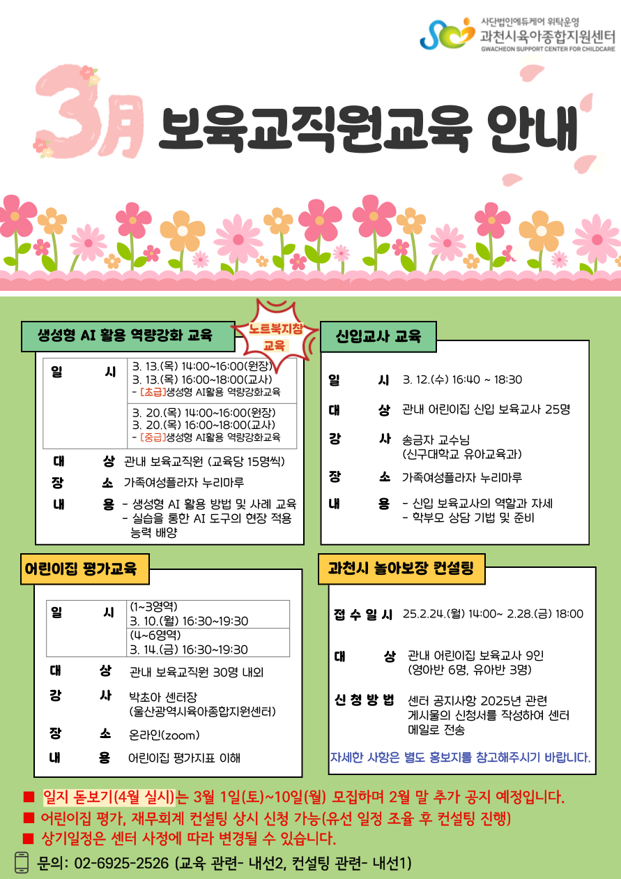[¾î¸°ÀÌÁýÁö¿ø] 2025³â 3¿ù º¸À°±³Á÷¿ø ±³À° ¾È³»