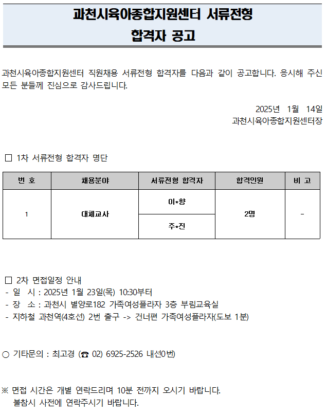 [°úõ½ÃÀ°¾ÆÁ¾ÇÕÁö¿ø¼¾ÅÍ] Á÷¿øÃ¤¿ë 1Â÷ ¼·ùÀüÇü ÇÕ°ÝÀÚ °ø°í