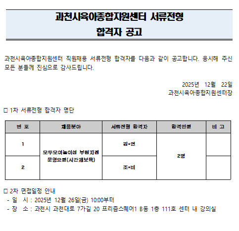 [°úõ½ÃÀ°¾ÆÁ¾ÇÕÁö¿ø¼¾ÅÍ] Á÷¿øÃ¤¿ë(¿î¿µ¿ä¿ø) 1Â÷ ¼·ùÀüÇü °á°ú °ø°í