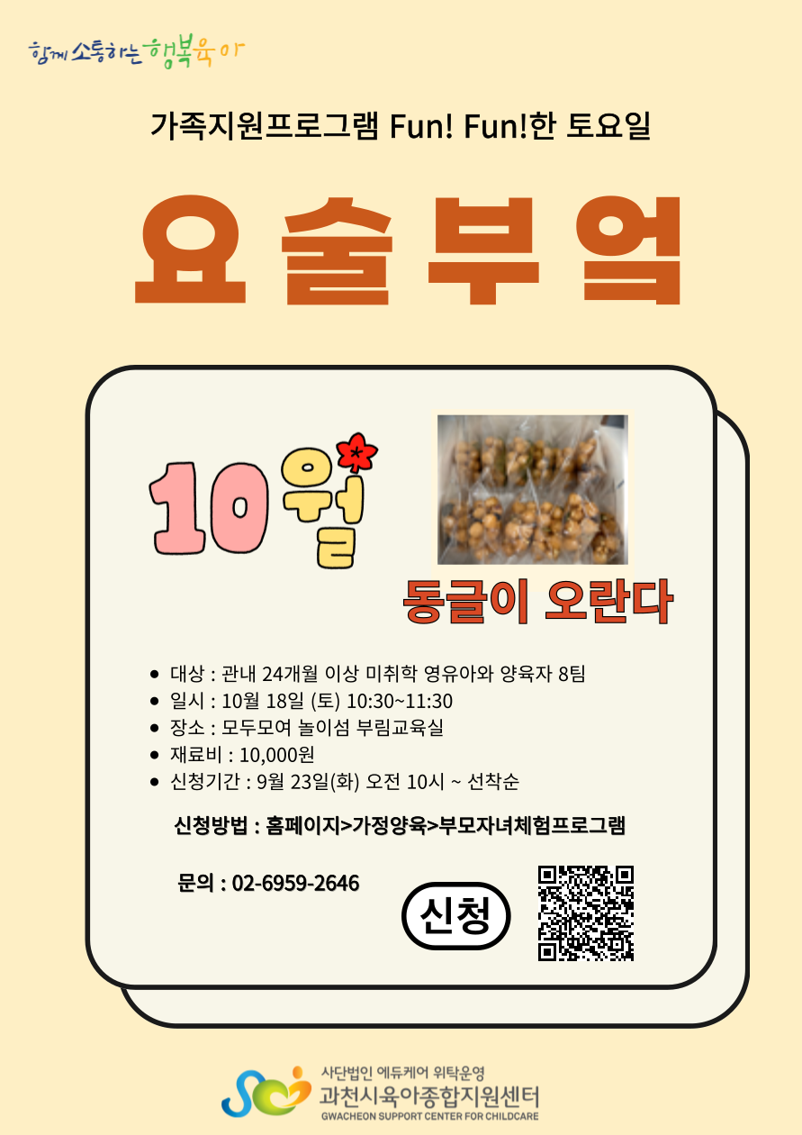 ¸Å¿ù ù°, µÑ°, ¼Â° ÁÖ¿¡ ¸ðµÎ¸ð¿© ³îÀ̼¶ ºÎ¸²ÁöÁ¡¿¡¼ ¸¸³ª´Â Fun! Fun!ÇÑ Åä¿äÀÏ ¼ö¾÷À¸·Î ¿ä¸®, Ŭ·¹ÀÌ, ¸ñ°ø ¼ö¾÷ÀÔ´Ï´Ù.