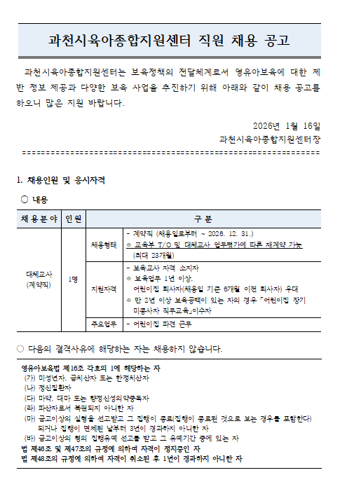 [°úõ½ÃÀ°¾ÆÁ¾ÇÕÁö¿ø¼¾ÅÍ] Á÷¿øÃ¤¿ë(´ëü±³»ç) °ø°íÀÇ °Ç