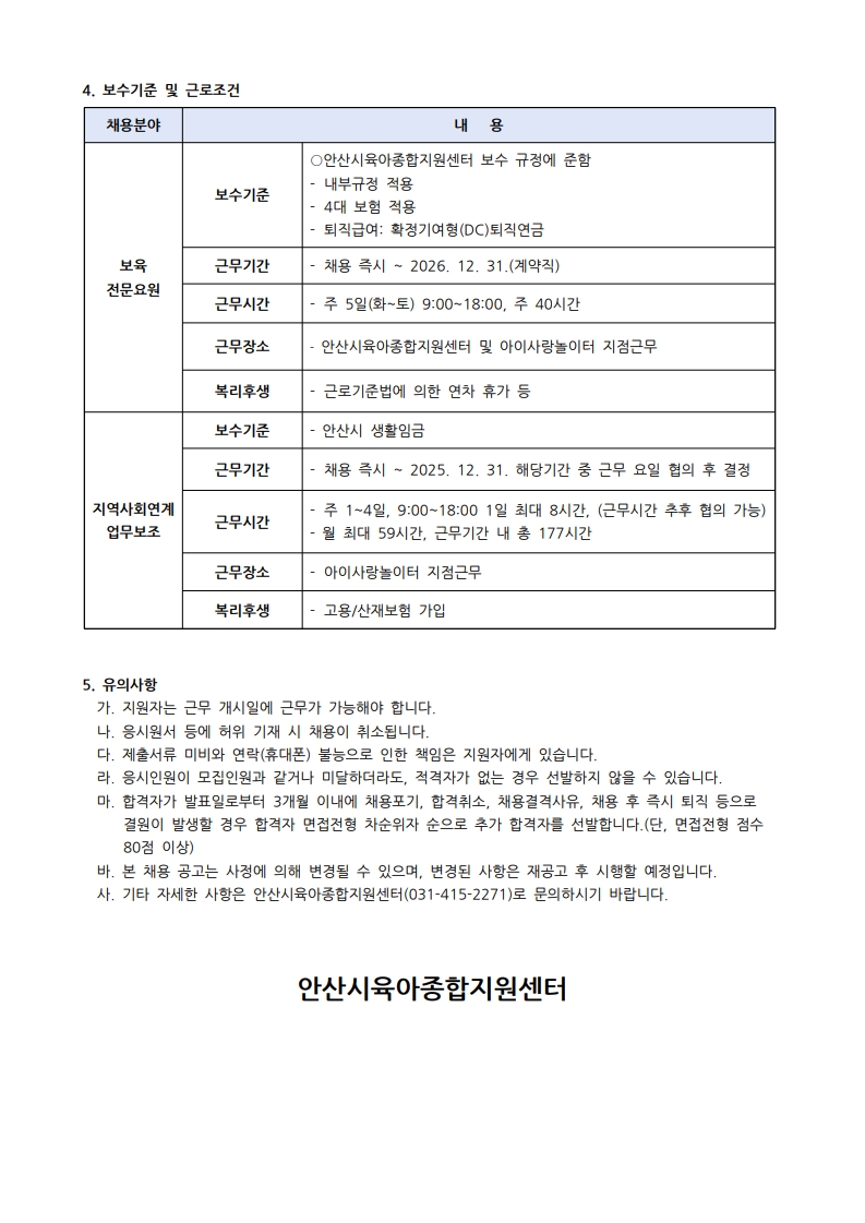 [¾È»ê½ÃÀ°¾ÆÁ¾ÇÕÁö¿ø¼¾ÅÍ] Á÷¿ø(º¸À°Àü¹®¿ä¿ø, Áö¿ª»çȸ¿¬°èüÇèó ¿î¿µº¸Á¶) ä¿ë°ø°í