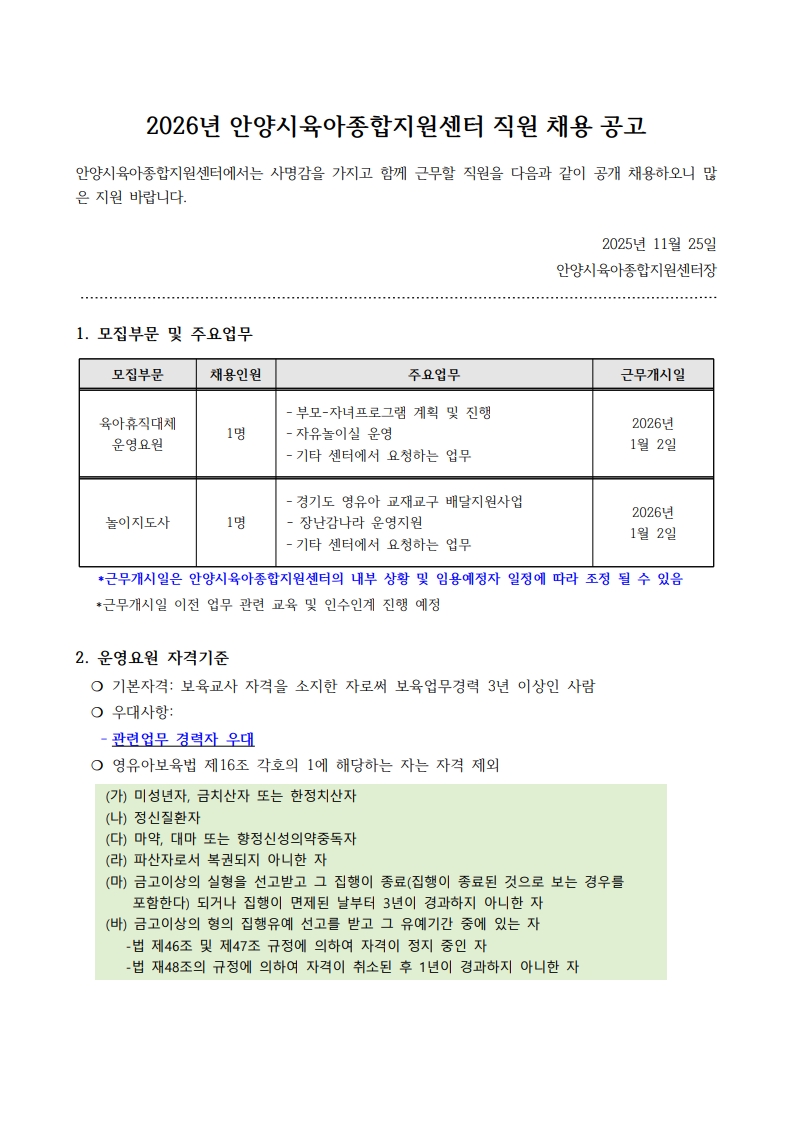 [¾È¾ç½ÃÀ°¾ÆÁ¾ÇÕÁö¿ø¼¾ÅÍ] 2026³â ¾È¾ç½ÃÀ°¾ÆÁ¾ÇÕÁö¿ø¼¾ÅÍ Á÷¿ø ä¿ë °ø°í