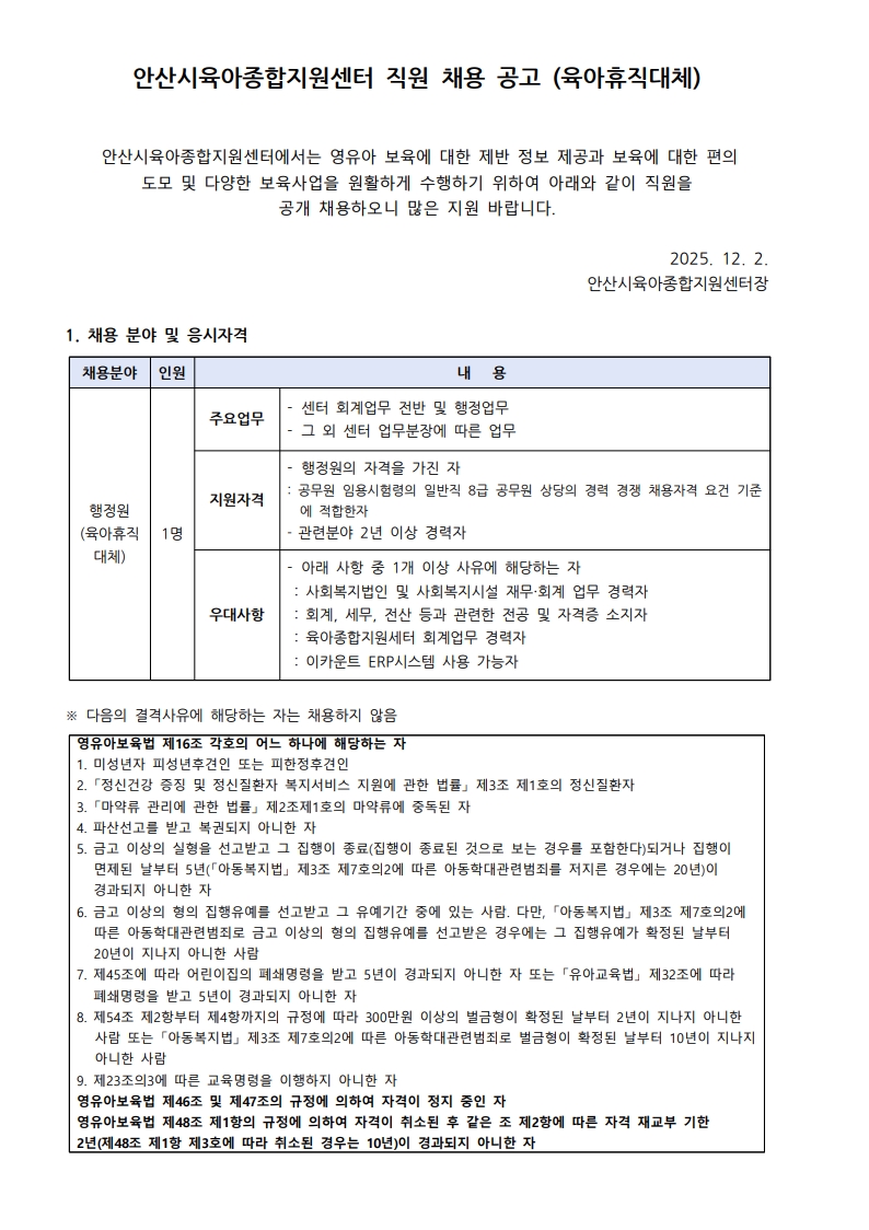 [¾È»ê½ÃÀ°¾ÆÁ¾ÇÕÁö¿ø¼¾ÅÍ] Á÷¿ø(ÇàÁ¤¿ø)ä¿ë°ø°í
