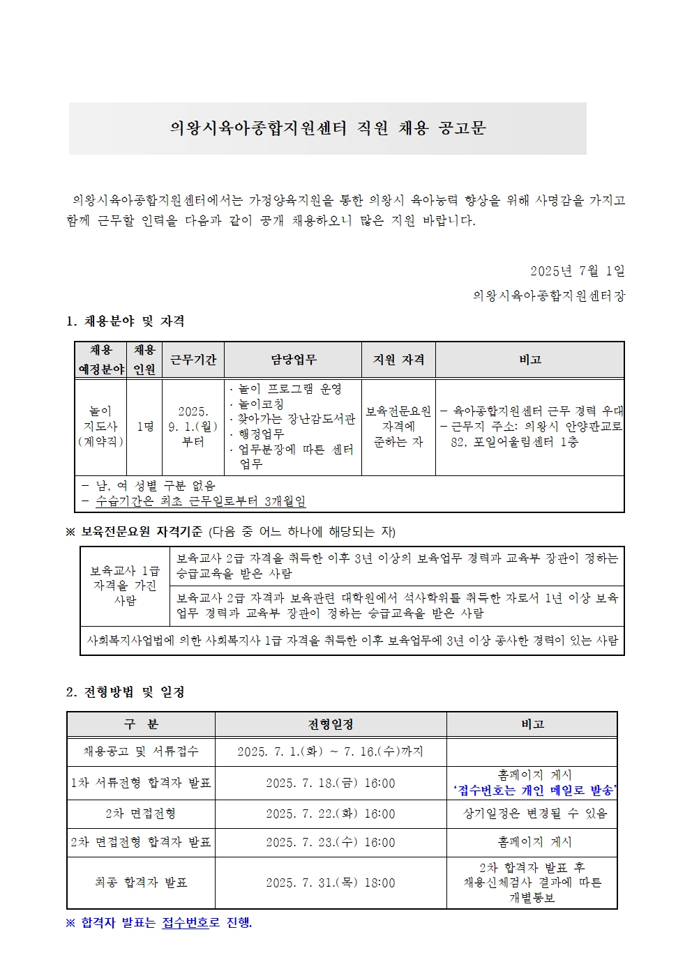 [ÀǿսÃÀ°¾ÆÁ¾ÇÕÁö¿ø¼¾ÅÍ] Á÷¿ø ä¿ë °ø°í