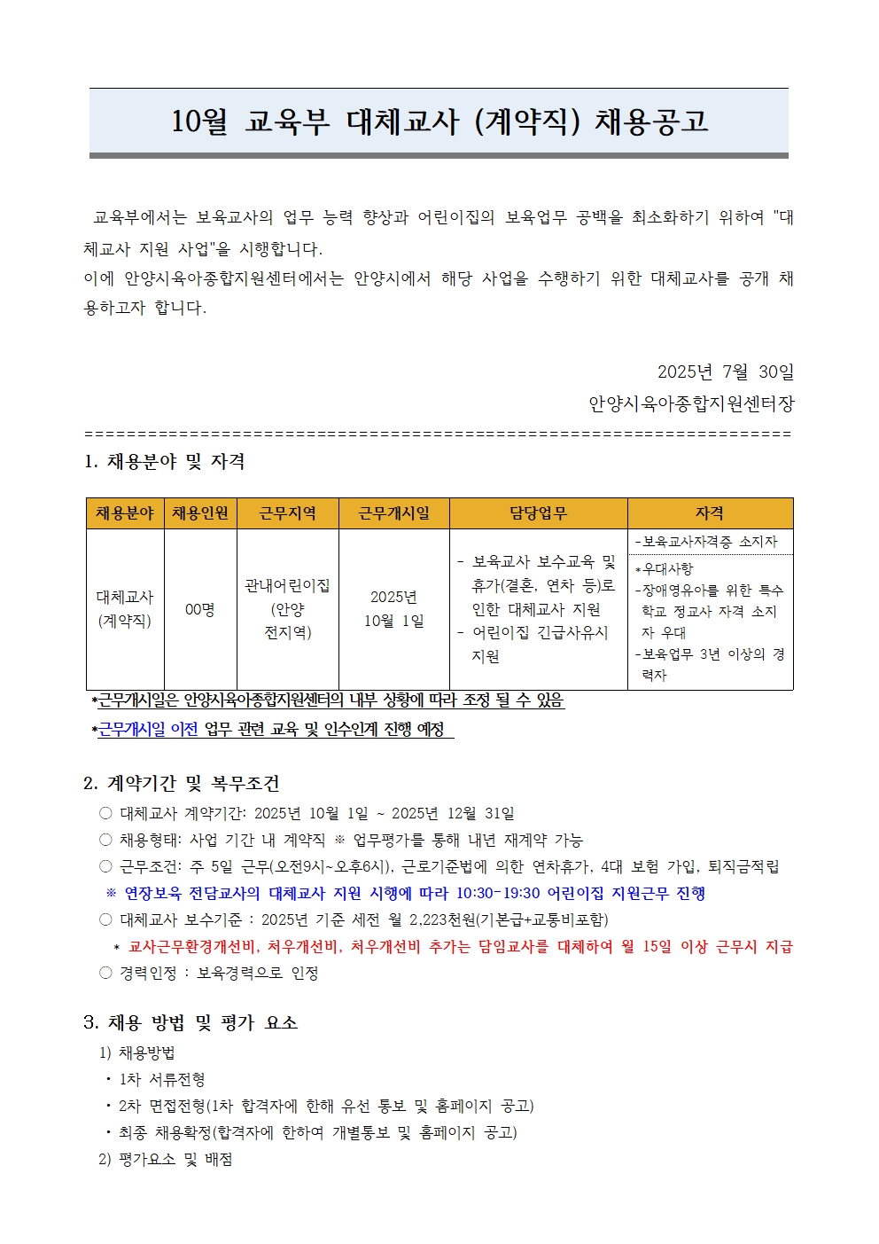 [¾È¾ç½ÃÀ°¾ÆÁ¾ÇÕÁö¿ø¼¾ÅÍ] ´ëü±³»ç ä¿ë°ø°í