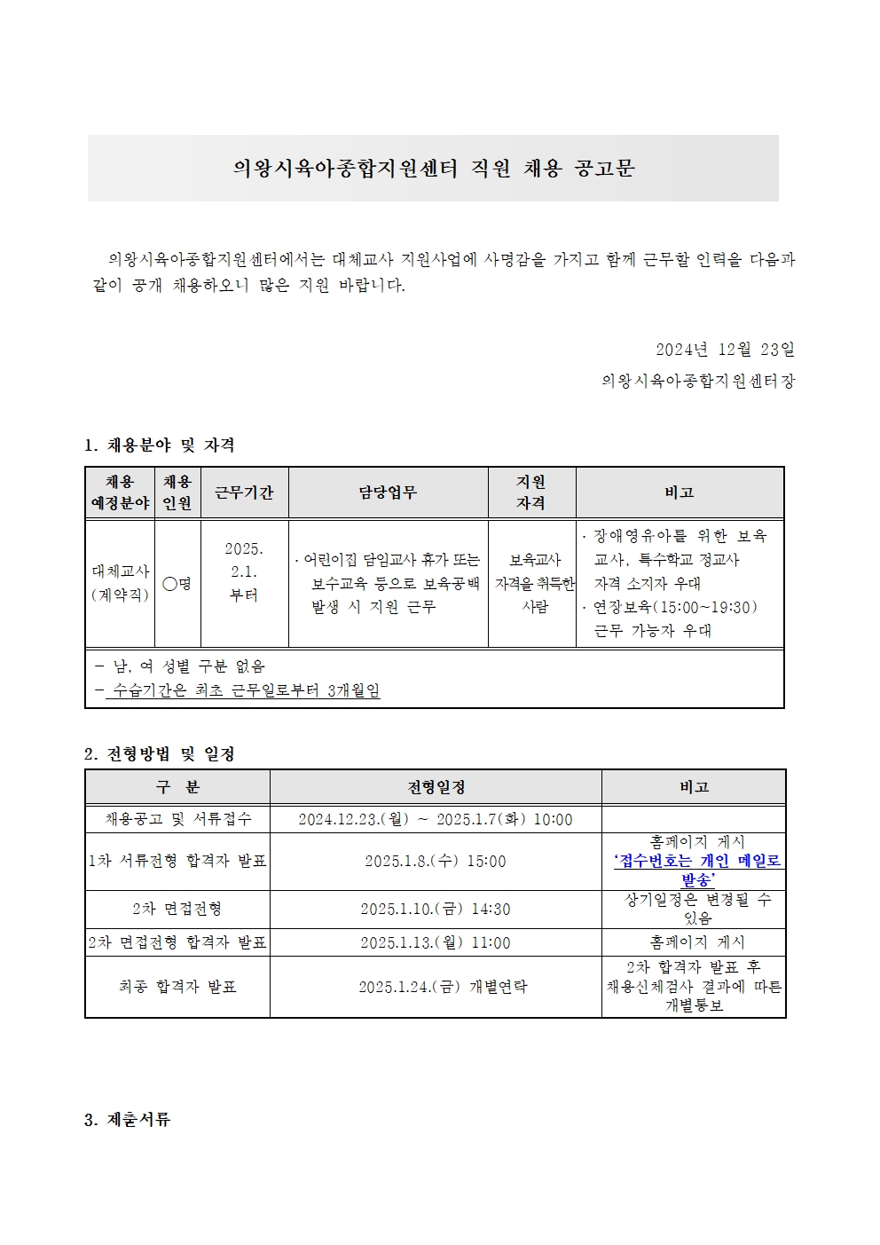ÀǿսÃÀ°¾ÆÁ¾ÇÕÁö¿ø¼¾ÅÍ Á÷¿ø(´ëü±³»ç) ä¿ë °ø°í