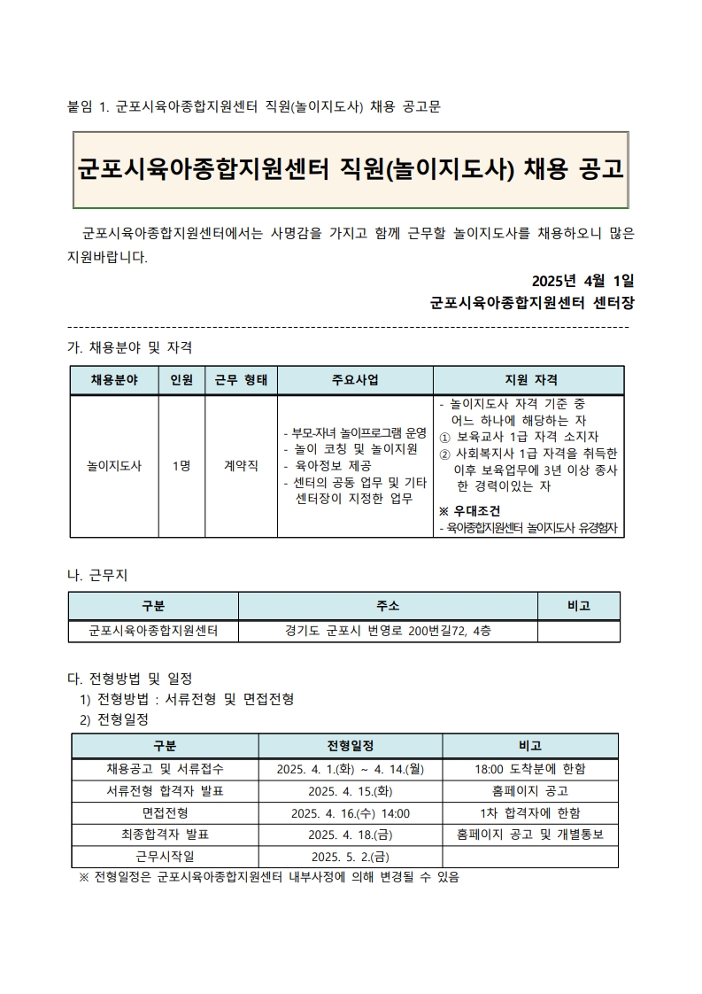 ºÙÀÓ1. ±ºÆ÷½ÃÀ°¾ÆÁ¾ÇÕÁö¿ø¼¾ÅÍ Á÷¿ø(³îÀÌÁöµµ»ç) ä¿ë °ø°í¹®.pdf