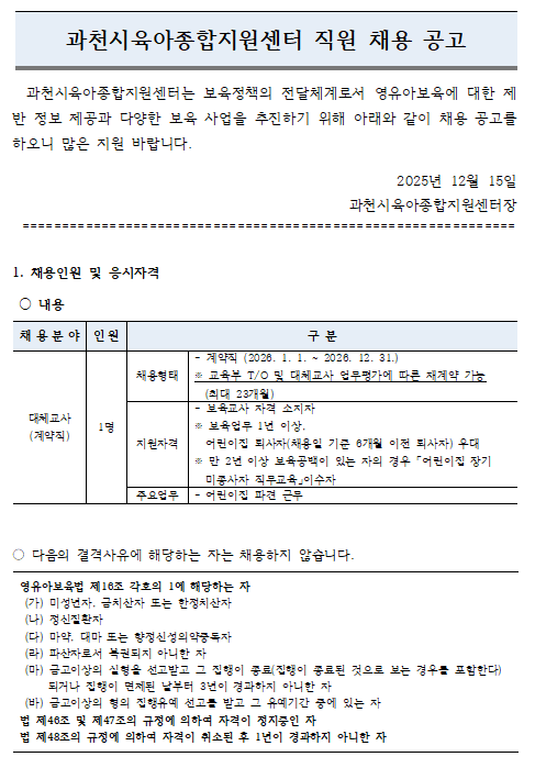 [°úõ½ÃÀ°¾ÆÁ¾ÇÕÁö¿ø¼¾ÅÍ] Á÷¿ø ä¿ë °ø°í(´ëü±³»ç)