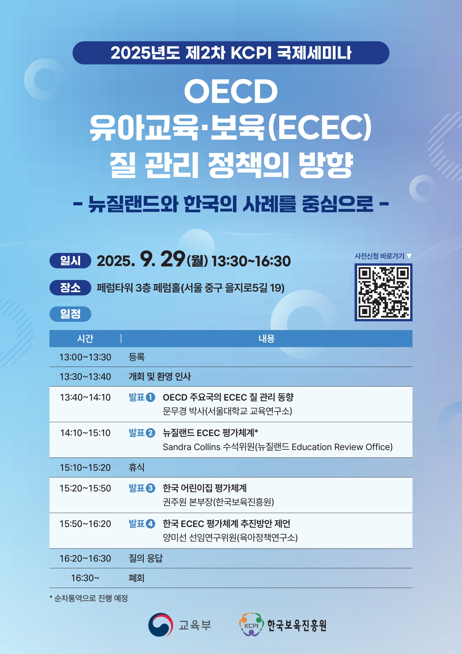 [Çѱ¹º¸À°ÁøÈï¿ø] 2025³â Á¦2Â÷ KCPI ±¹Á¦¼¼¹Ì³ª ¡¸OECD À¯¾Æ±³À°¡¤º¸À°(ECEC) Áú °ü¸® Á¤Ã¥ÀÇ ¹æÇ⡹ °³ÃÖ