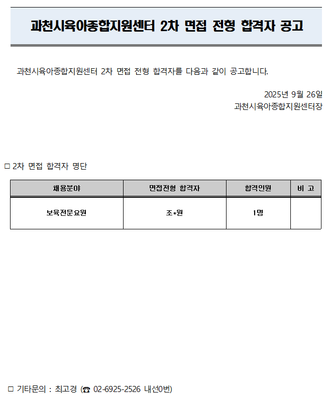 [°úõ½ÃÀ°¾ÆÁ¾ÇÕÁö¿ø¼¾ÅÍ] Á÷¿øÃ¤¿ë 2Â÷ ¸éÁ¢ÀüÇü ÇÕ°ÝÀÚ °ø°í