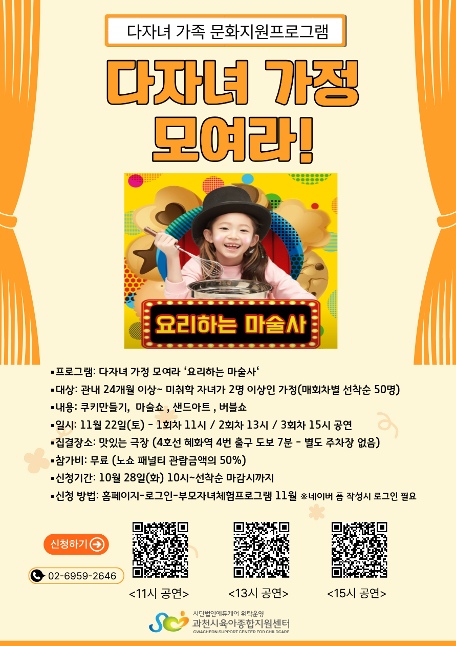 | [°¡Á·Áö¿øÇÁ·Î±×·¥ Fun FunÇÑ Åä¿äÀÏ] ´ÙÀڳడÁ¤ ¸ð¿©¶ó! ¡®¿ä¸®ÇÏ´Â ¸¶¼ú»ç¡¯ | |||||