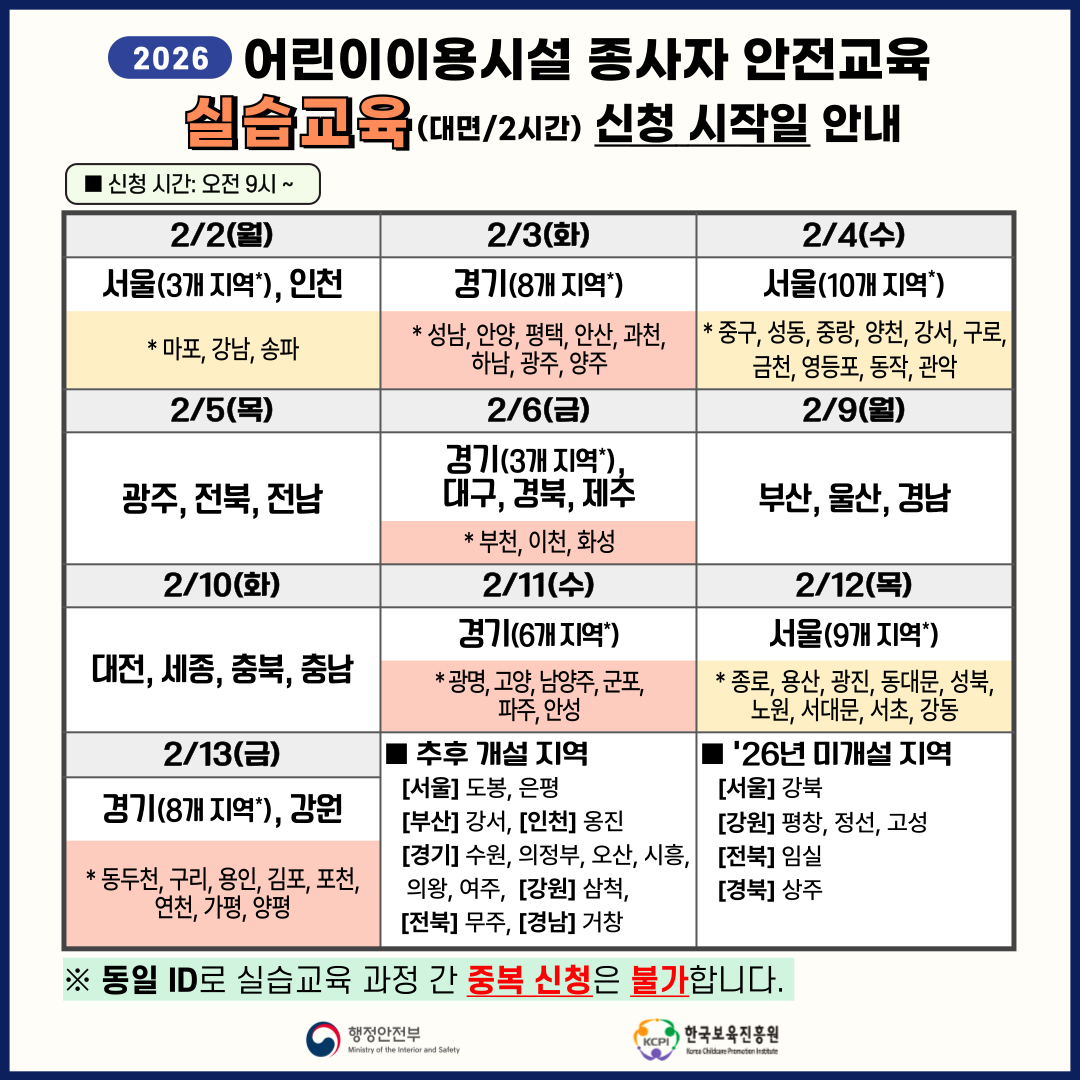 「2026년 어린이이용시설 종사자 안전교육」 연간 운영 사항을 안내 드립니다.