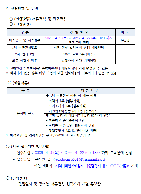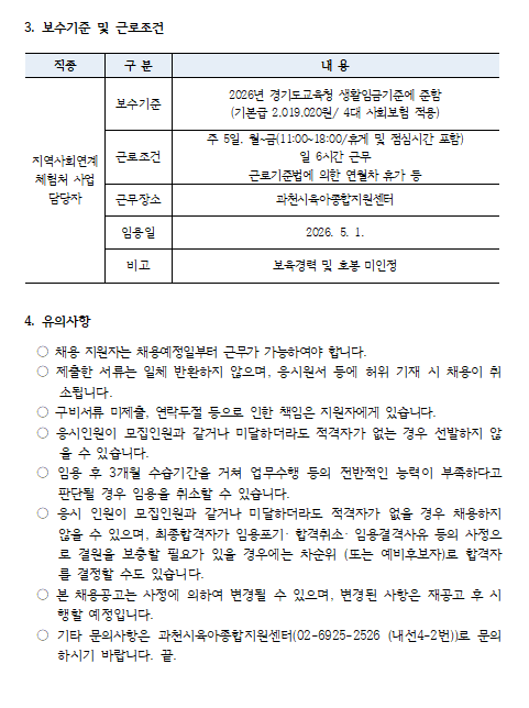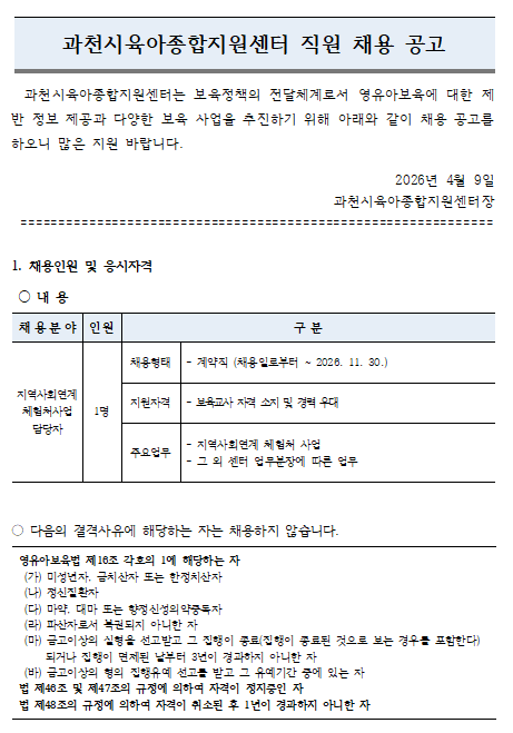 [과천시육아종합지원센터] 직원채용(지역사회연계체험처 사업담당자) 공고