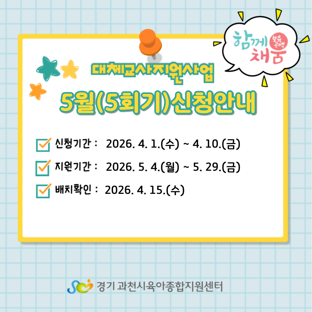[대체교사지원사업] 2026년 5월 (5회기) 교육부 대체교사 신청기간 및 방법 안내
