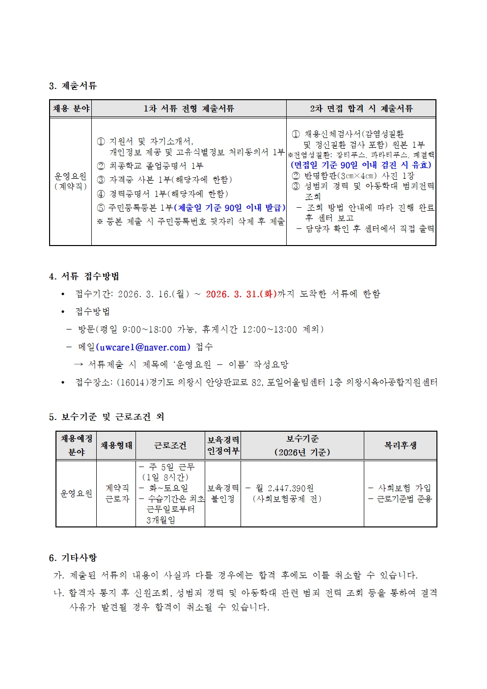 [의왕시육아종합지원센터] 직원 채용에 따른 홈페이지 공고