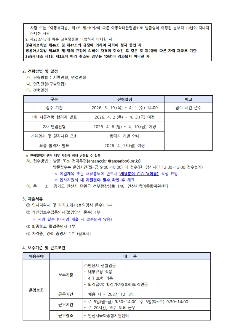 [안산시육아종합지원센터] 직원 채용 공고
