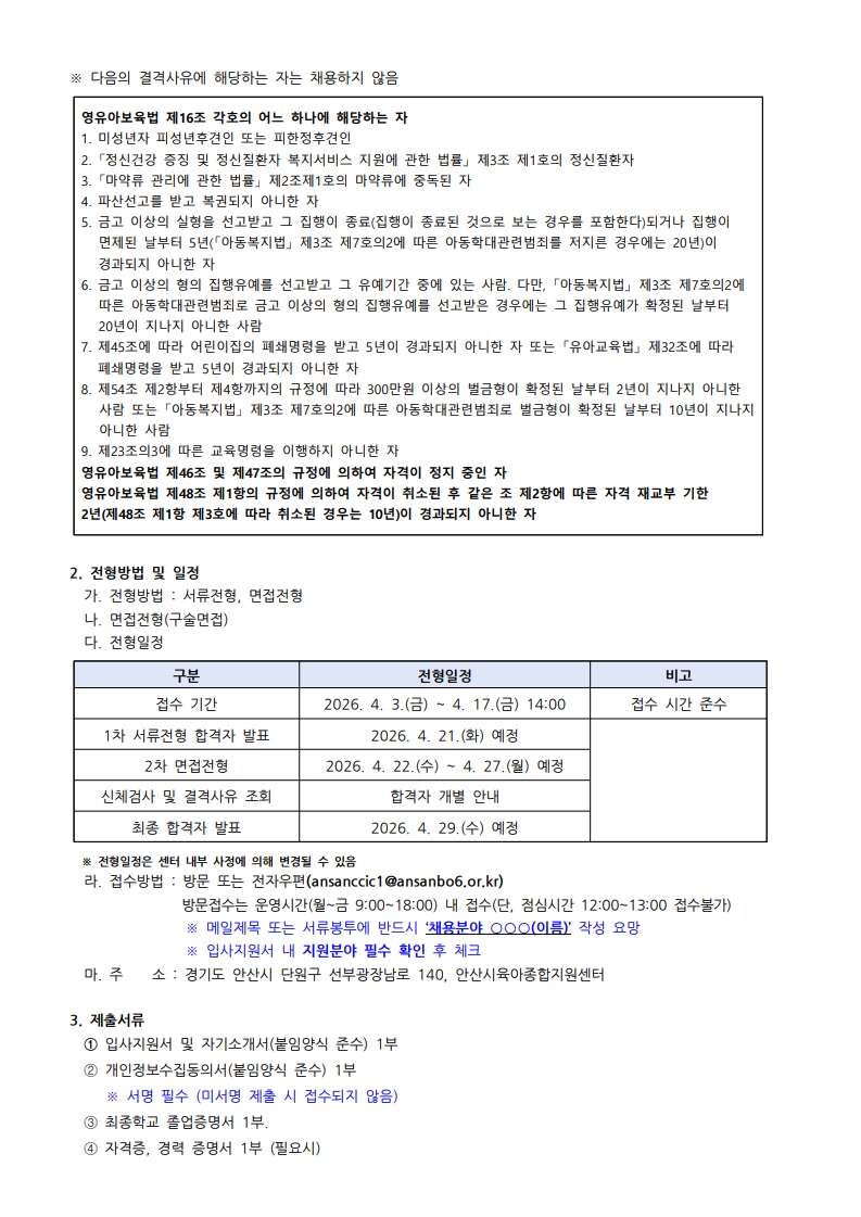 [안산시육아종합지원센터] 대체교사 채용 공고