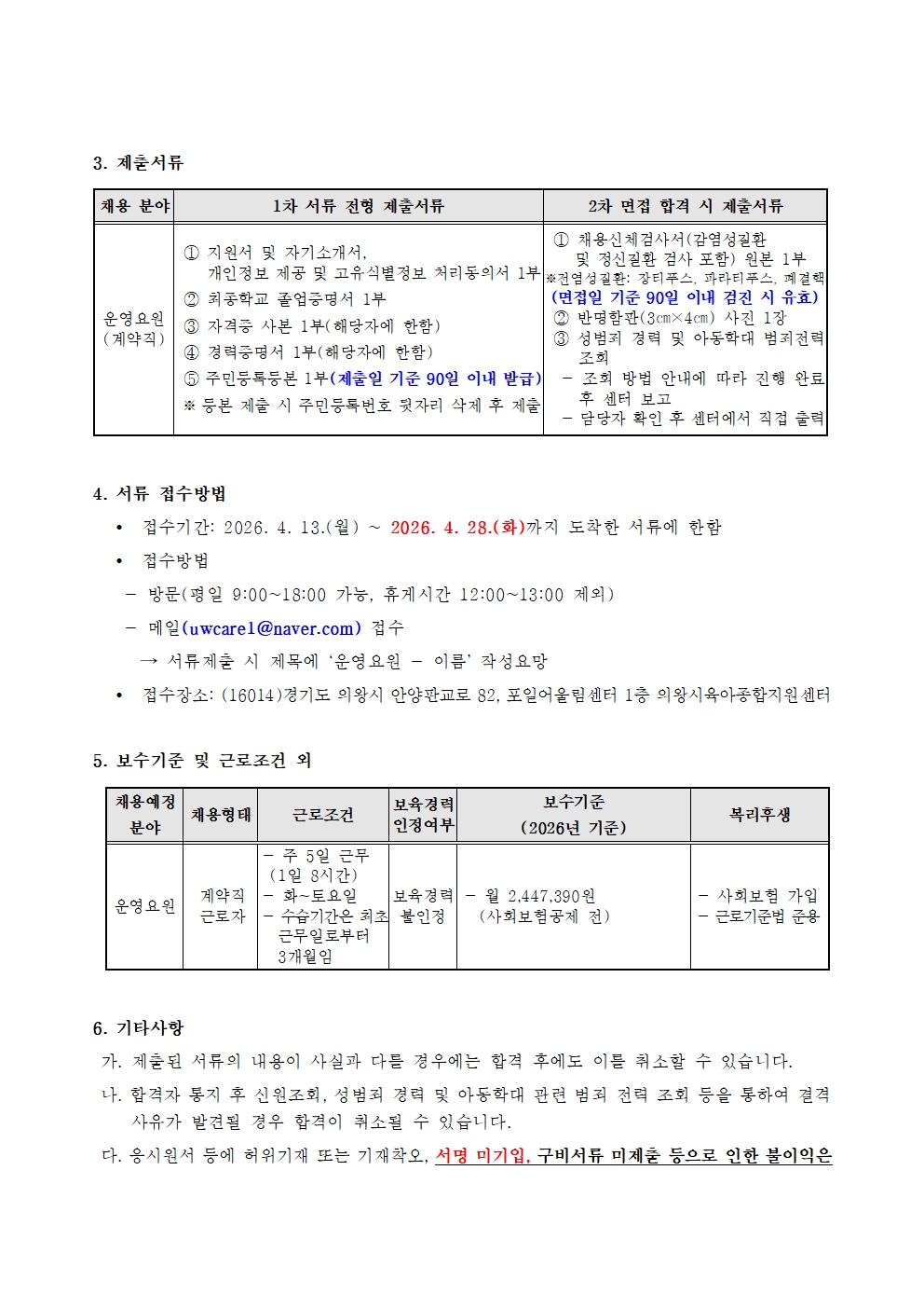 붙임1_의왕센터 직원 채용 공고문.hwp