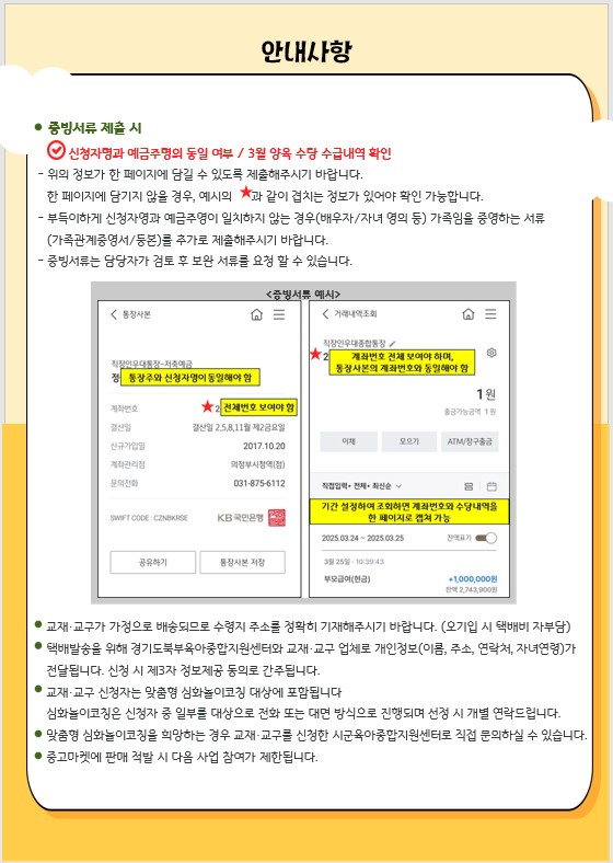 부모급여 수령 예금주가 다를 경우 가족관계증명서를 추가 제출해야 합니다.