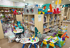 구분, 놀이실, 장난감도서관, 세척실, 화장실, 수유실, 안내데스크로 구성